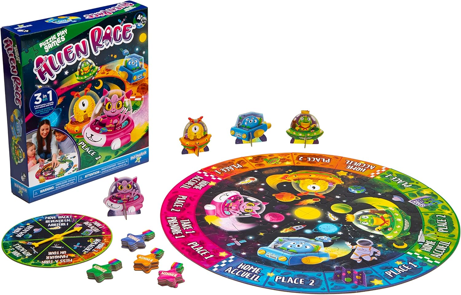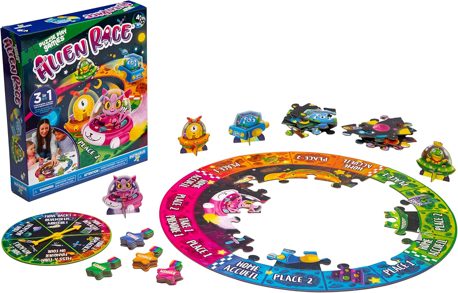 THREE IN ONE: Alien Race is a  board game, a puzzle, and a search-and-find!