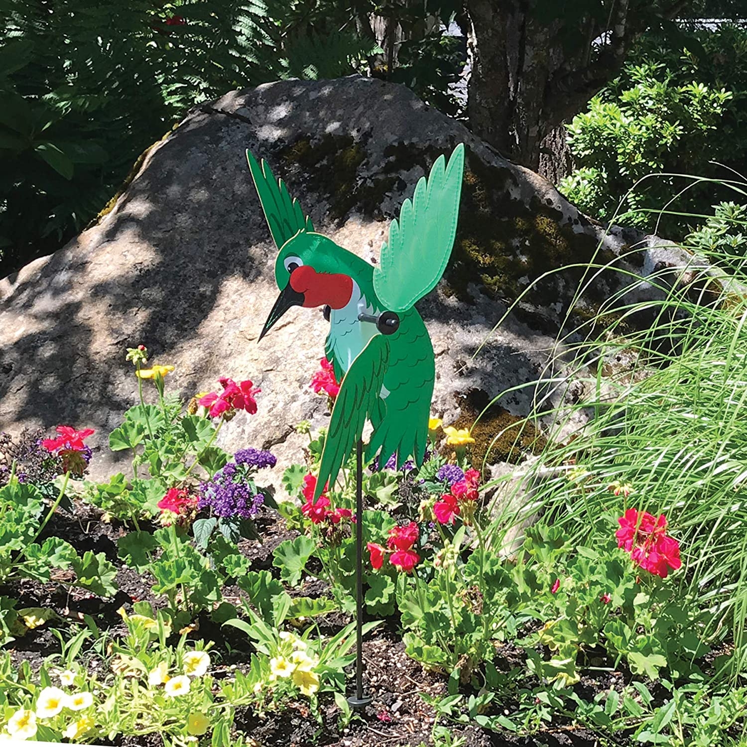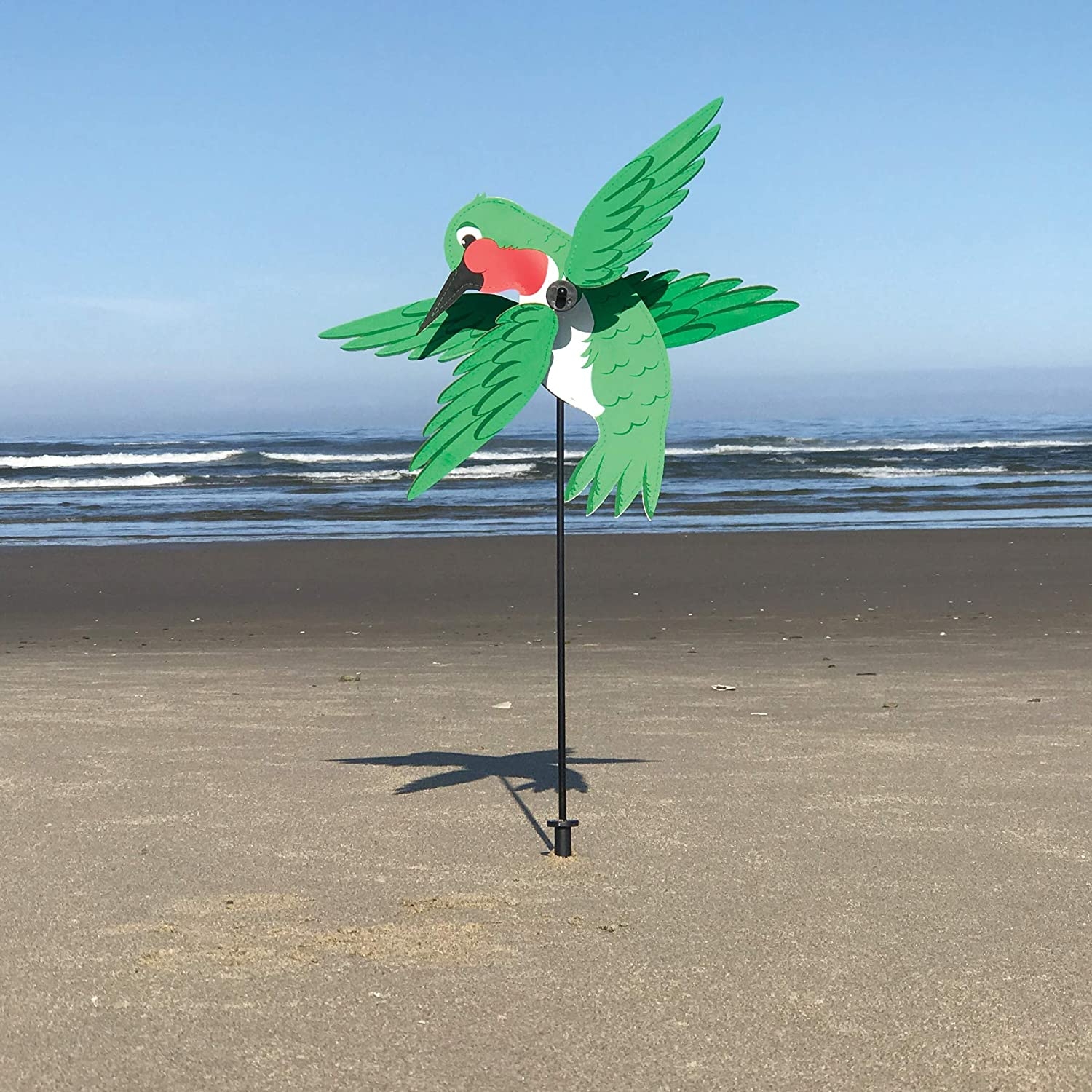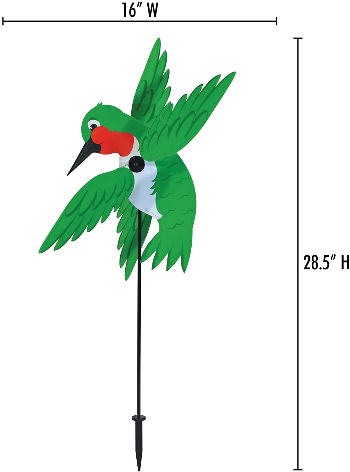 Baby Hummingbird Whirligig Wind Yard Garden Spinner by In The Breeze. Looking to add something special to your garden? Then look no further! The In the Breeze Baby Hummingbird Whirligig is that something! This little cutie is a great way to add color and movement to your yard. Made with weather and fade resistant fabric, as well as a fiberglass frame to keep it’s shape, your spinner will bring smiles to all who see it. Don’t forget to check out all the whirligig friends! Included with your spinner is two metal locking washers so you never have to worry about losing a wing! Do keep in mind, that once the washer is on, it is very difficult to remove! We can’t wait to see them out spinning.