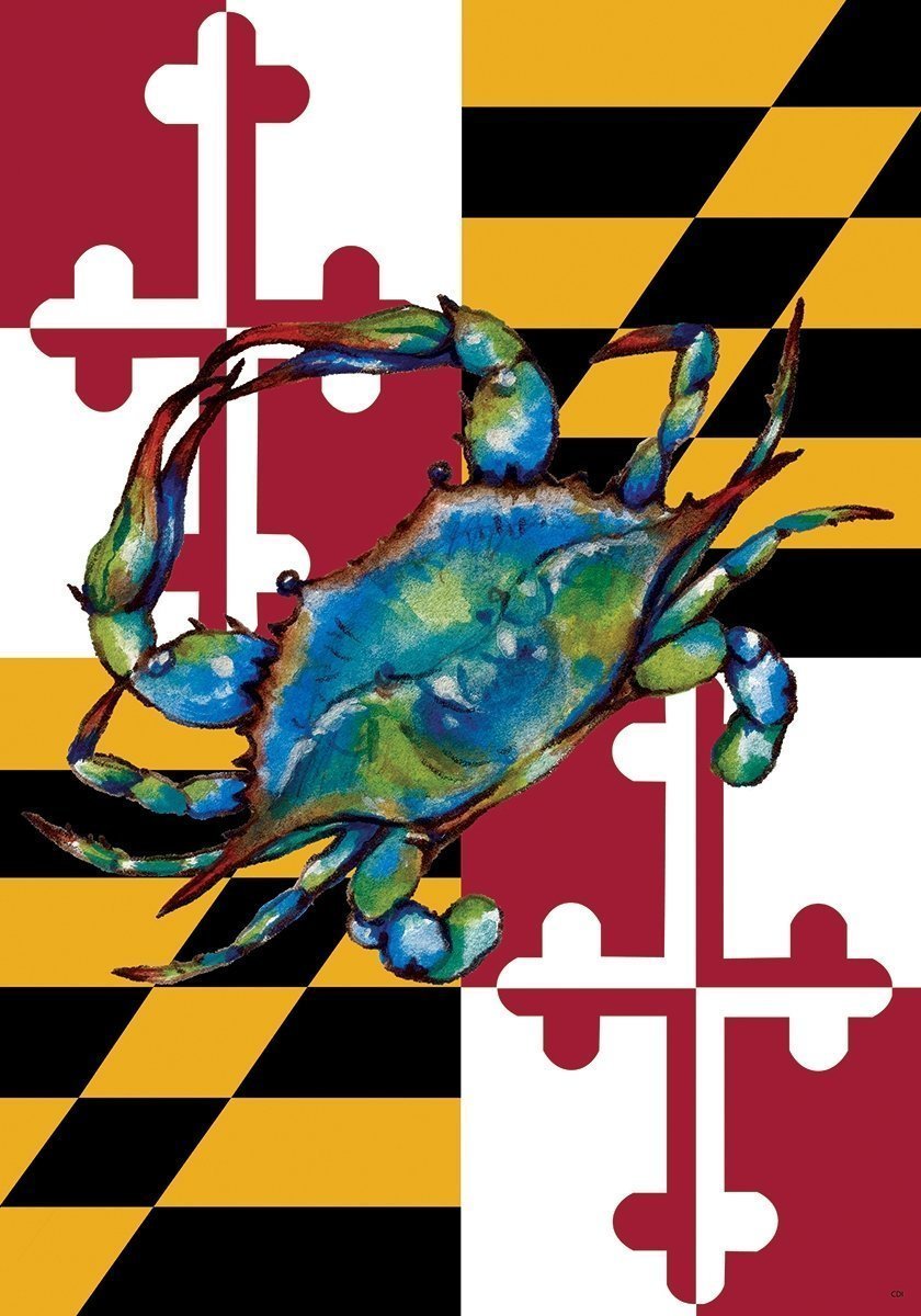 Blue Crab Maryland House Flag by Custom Decor. Welcome in the season with one this Gorgeous Double Sided Flag. We are proud to say they are printed in the USA! Each flag is printed using a fade resistant ink, on luxurious velvety soft heavyweight fabric, creating a beautiful drape showcasing its stunning design.