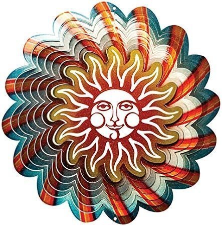 Durable and waterproof, this decoration will spin in the wind, creating stunning visual effects. Wind Spinner Made from stainless steel. Has a 12″ diameter metal sun with perforations that you can separate as much or as little as you like for different visual results. Includes a hangar hook with a freely spinning barrel attachment so your decoration won’t get hung up or stop moving.