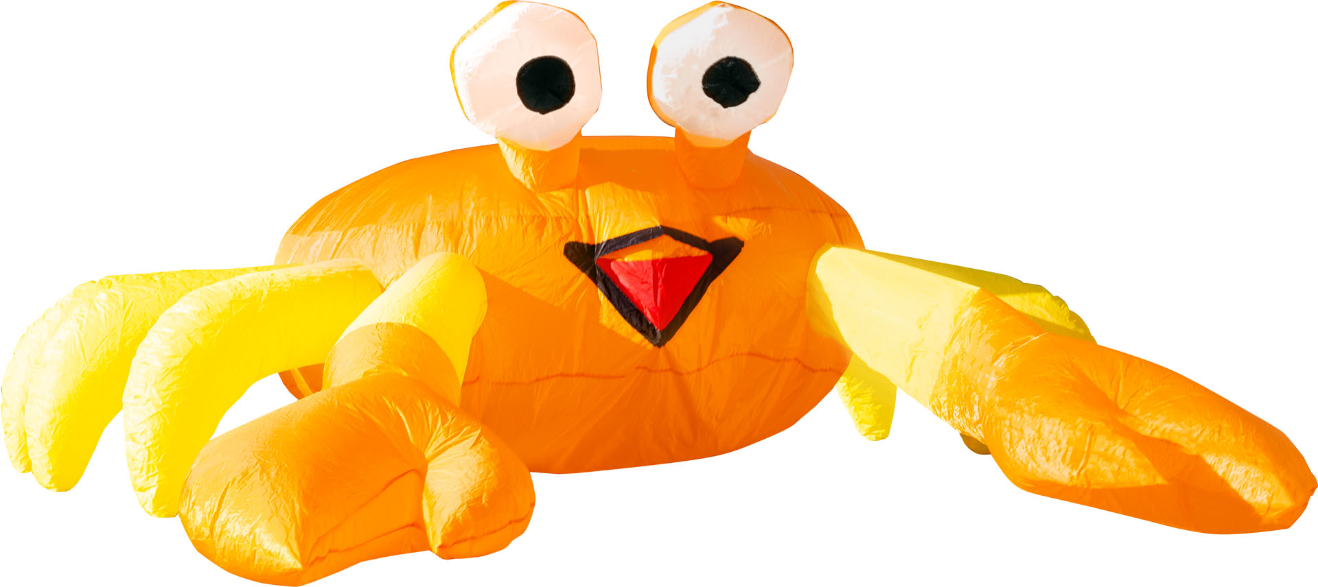 Our LARGE self-inflating Bouncing Buddies Crabs perform a back-and-forth side scurry on the ground when the wind blows. They are sure to draw attention as beach and lawn decorations. Just attach the bridal point to a sand anchor or lawn chair and watch them bounce around all day.