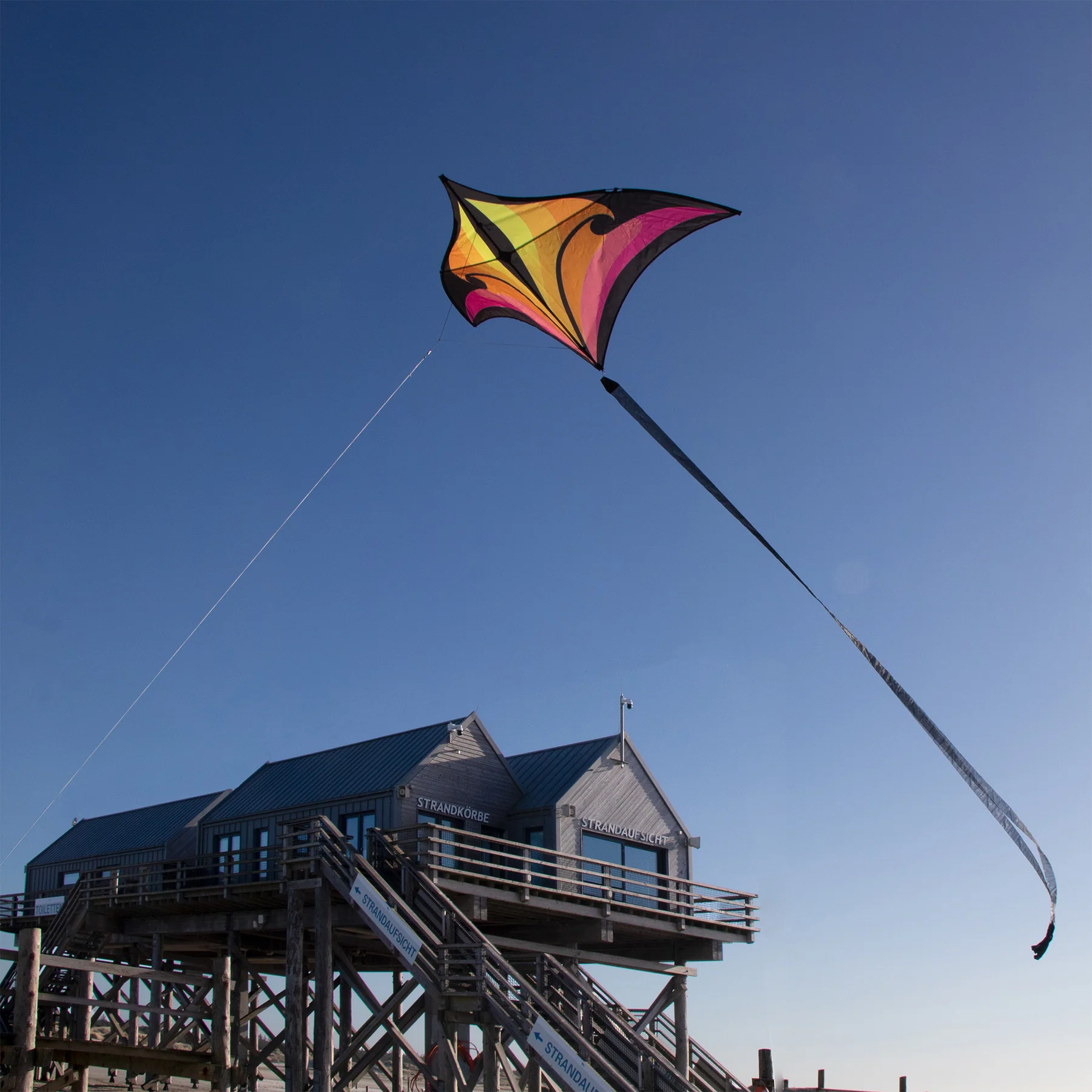 In addition to its beauty, the Swift is built for ease of use. It features a 5-foot wingspan and a flexible fiberglass frame. As a result, the kite launches effortlessly in wind ranges from 5 to 25 mph. Moreover, a striking 14.5-foot organza twin-ribbon tail is included. This tail adds exceptional stability while providing a visual drama that is hard to miss.