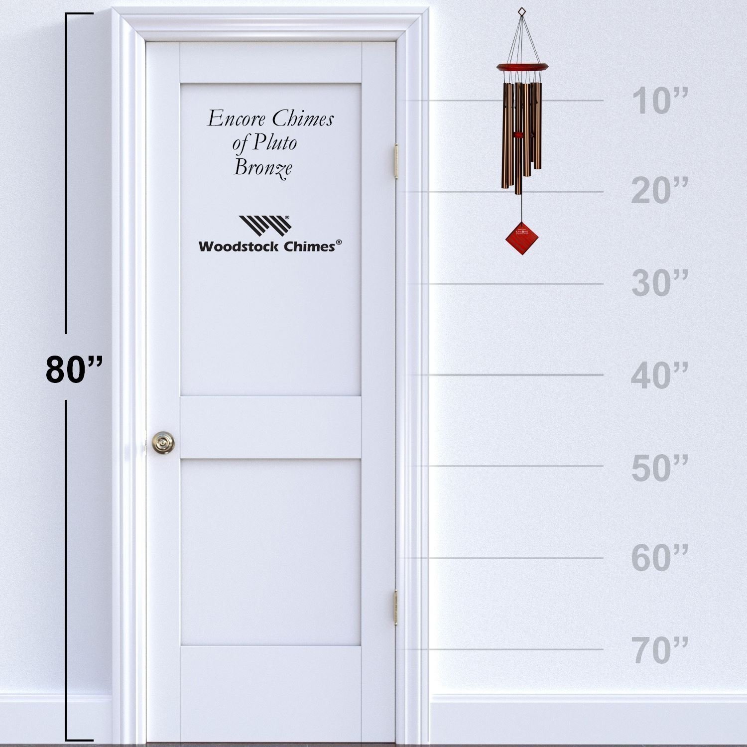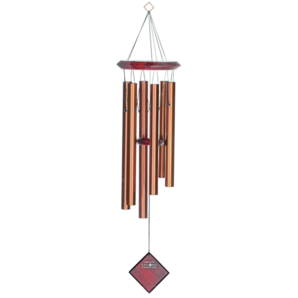 The Woodstock Chimes of Pluto is named for the outermost planet in our solar system and discovered in 1930. Pluto was reclassified as a “dwarf planet” in 2006 and is composed primarily of rock and ice. This chime is designed and handcrafted for superior musical performance. It is hand-tuned to a universal five-note scale and acts in concert with the window to create random patterns of wonderful sound. Harmonizes beautifully with all the other Encore Collection chimes!