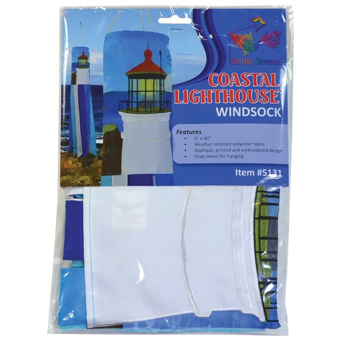 Add a touch of the sea life with the Coastal Lighthouse 40-inch Windsock. The printed design and embroidered details of the coastal lighthouse add a beautiful touch to this classic windsock. Based on the Heceta Head Lighthouse on the Oregon Coast!