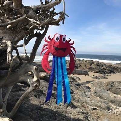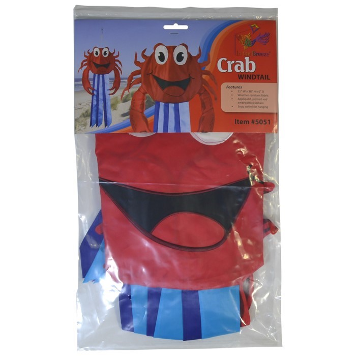 This Crab Windtail is an excellent addition to any outdoor decor for a touch of color and fun. It features 2D graphics with bright, bold colors and coordinating tails that flutter whimsically in the breeze.