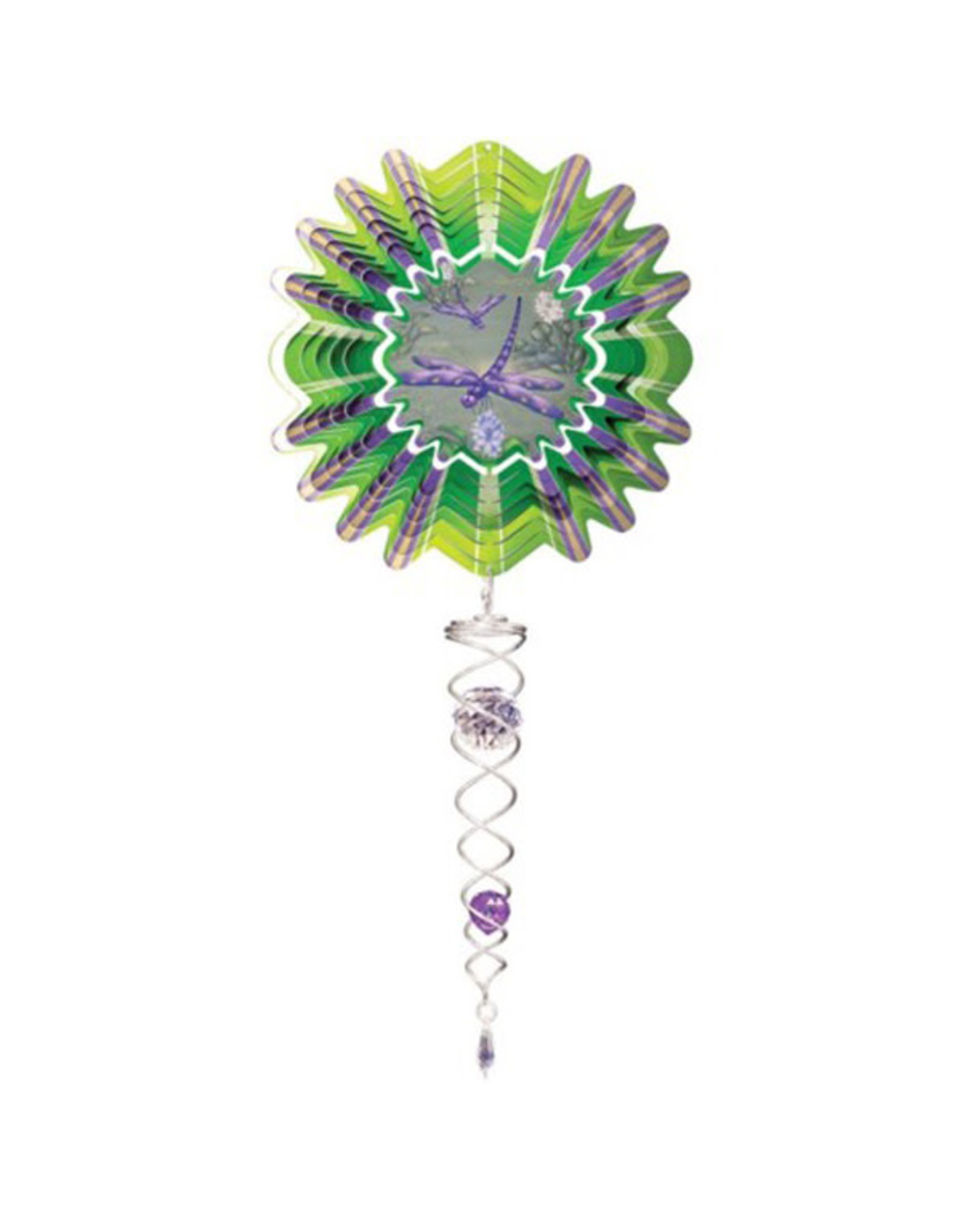 Dragonfly Animated Mini Metal Wind Spinner And Tail by Spinfinity- 6.5″ Diameter. Perfect for your back porch, front deck, or nearby garden space, the Spinfinity Designs® Dragonfly Animated Mini Wind Spinner twists, twirls, and turns in the breeze. Create flashing, dazzling effects and ever-changing designs. At the center a dragonfly flaps its wings back and forth. See the edges of this lawn ornament shimmer and flash in the sunlight. Includes an accented spiraling wire hanging from the bottom for added sparkle.