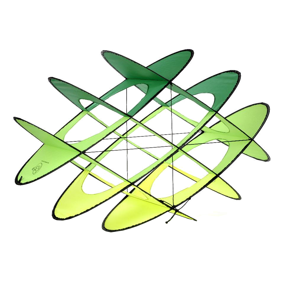 Like an irresistible lure, the Prism EO6 Kite (Expandable Object) box kite always attracts a crowd. The original brainchild of Phil McConnachie, internationally acclaimed Australian designer, the EO6 is a dynamic box kite that flies stable like a traditional single-liner, or tug on the line and it becomes a playful tumbler with a fascinating range of tricks. Its intersecting elliptical planes are completely unique and eye-catching in the sky, and best of all there’s literally no assembly required. The expandable structure springs open with a built-in elastic as you remove it from its clasp. Just find a little wind, pop it open, and watch it soar and tumble as it climbs into the sky. Amazingly durable and easy to fly for all ages, the EO6 can also be flown in multiples on a single string for a spectacular show.