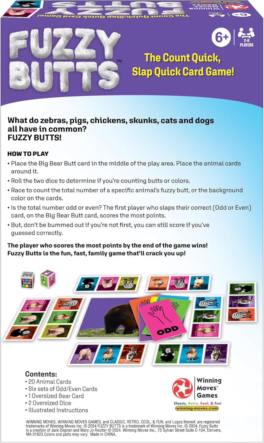 Winning Moves Games Fuzzy Butts Game: Fast-Playing Animal Themed Family Game for 2 to 6 Players, Ages 6+