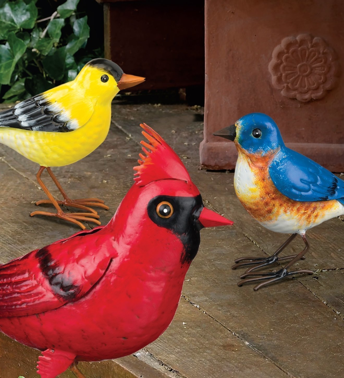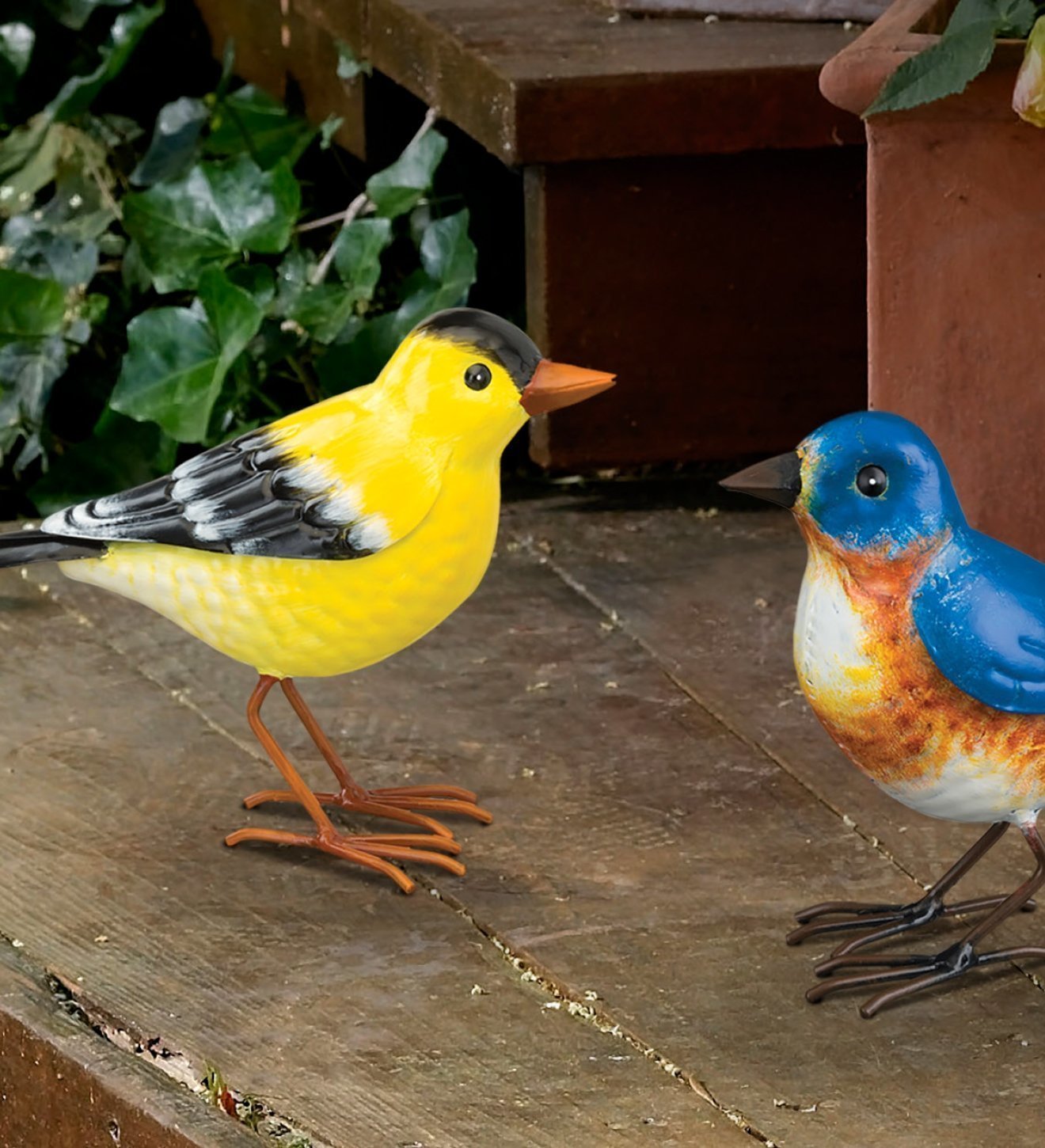 Life size, all metal Goldfinch replica with hand-painted realistic details. Each piece comes with a rubber band to attach the bird to a tree limb.
