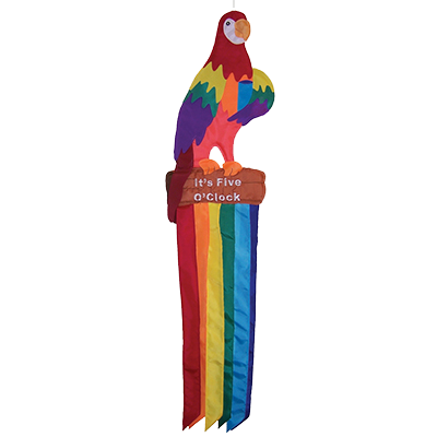 This It’s Five O’Clock Parrot Windtail is excellent to add to any outdoor decor for a touch of color and fun. It feature 2D graphics with bright, bold colors and coordinating tails that flutter whimsically in the breeze.