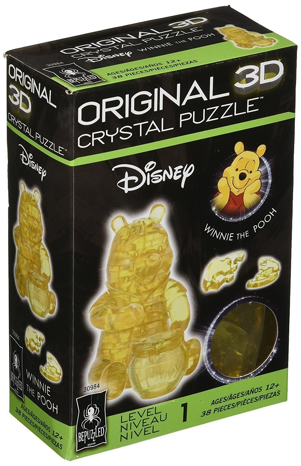 Winnie the Pooh 3D Crystal Puzzle by University Games presents a delightful interpretation of one of Disney’s most-loved characters. This sleek, translucent, crystalline puzzle has 38 unique interlocking pieces. When you’ve pieced it all together (be ready for a challenge), Winnie the Pooh is displayed busily enjoying his honey pot. This 3D puzzle has a difficulty level of 1. We have more than a dozen of your favorite Disney characters to assemble and collect. Disney logo and Winnie the Pooh character are used by permission. Delight your mind and eyes with our Winnie the Pooh 3D Crystal Puzzle by University Games. These three-dimensional brainteaser puzzles are enjoyable to work on, challenging to complete, and beautiful to display. They take puzzling to a whole new dimension and are recommended for puzzlers age 12 and up.