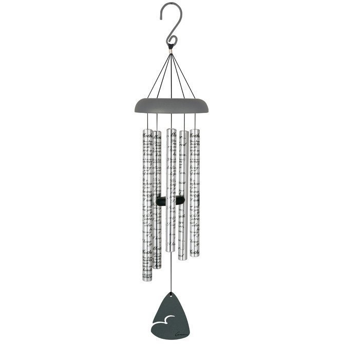 Carson’s 30″ Mother sonnet chimes have 5 heavy walled, center pinned tubes that emit deep tones. All aluminum construction, durable powder coated and anodized finish, and strung with industrial cord. Each chime has an adjustable striker. Tubes are 7/8″ diameter, sentiment is printed directly onto the tubes.