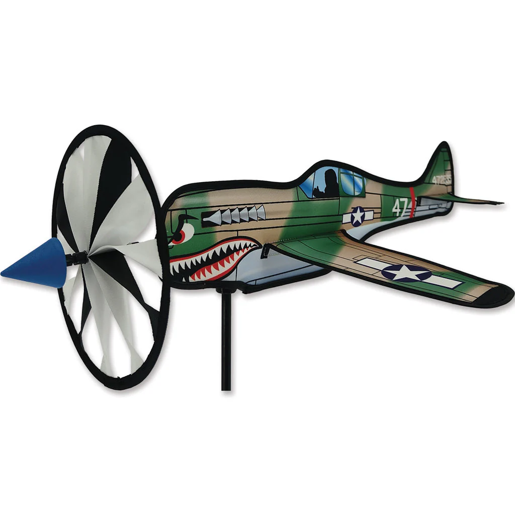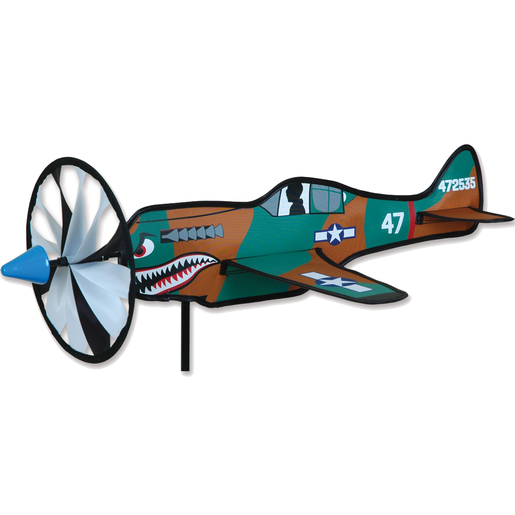 P-40 Warhawk Airplane Spinner – 20″. Celebrate early flight with our most engaging lawn ornaments, the airplane spinners. They bring an air of nostalgia wherever they land. With a striking attention to detail our airplanes are a timeless way to bring the golden age of aviation to any yard.