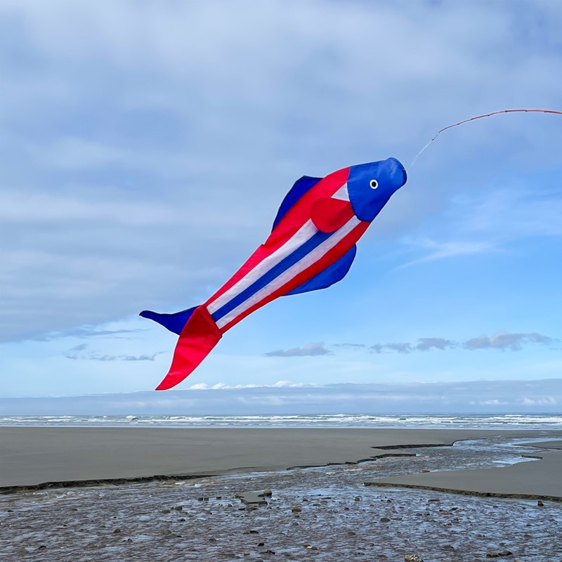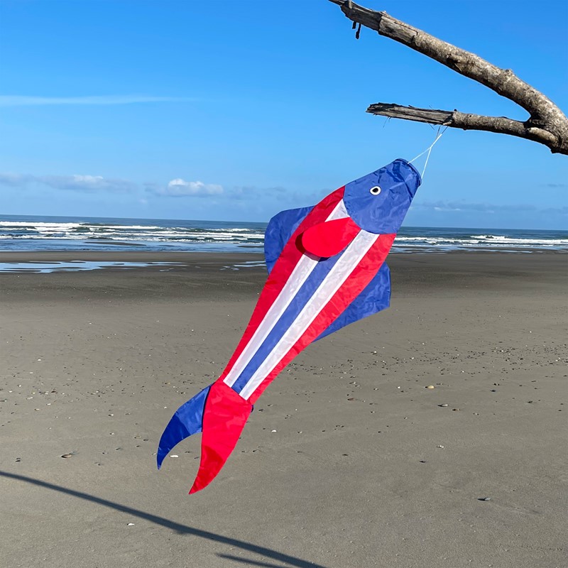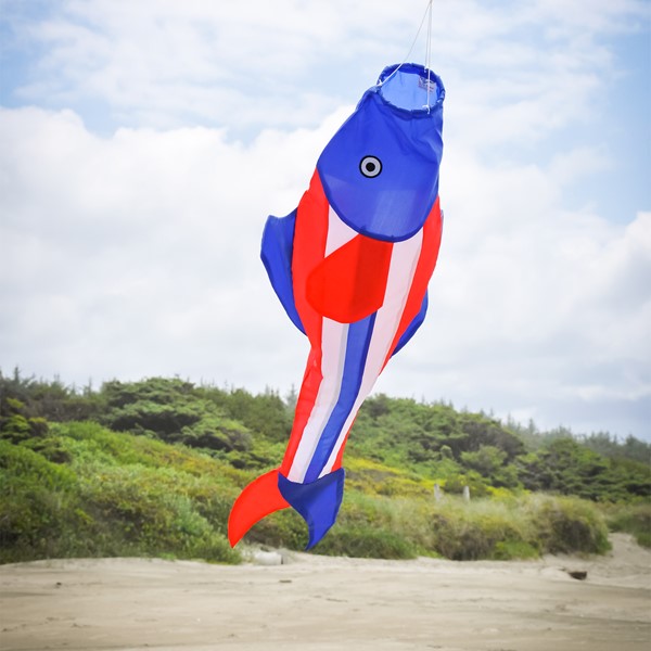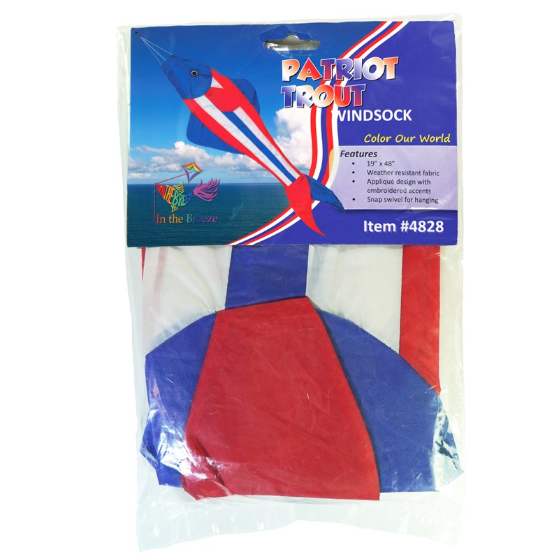 These Patriot Trout Fishsocks – 48″ make perfect Independence Day decor but are also fun for year-round display! The bright red, white, and blue colors look great as the Fish Windsock swims in the breeze.