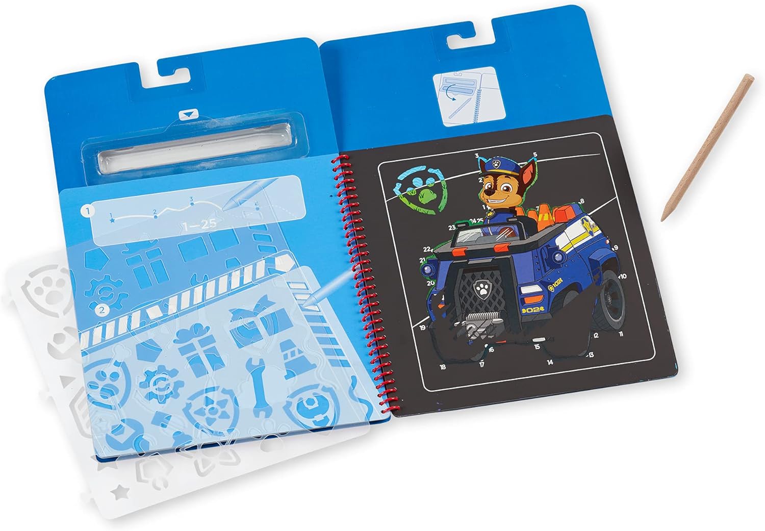 This compact and portable Scratch Art activity pad lets kids bring creativity anywhere they want to go! Use the included wooden stylus to etch lines, dots, and patterns to reveal hidden colourful artwork, featuring Chase and other PAW Patrol friends. The 10 scenes include either dot-to-dot or stencil activities to spark creativity so kids can make each page uniquely their own. The stylus and stencil sheet store in the spiral-bound pad, making it a great mess-free travel activity for kids five and older. PAW Patrol is always ready to help, inspiring preschoolers with a blend of teamwork, adventure, and humor as they develop social, emotional, and developmental skills through play.