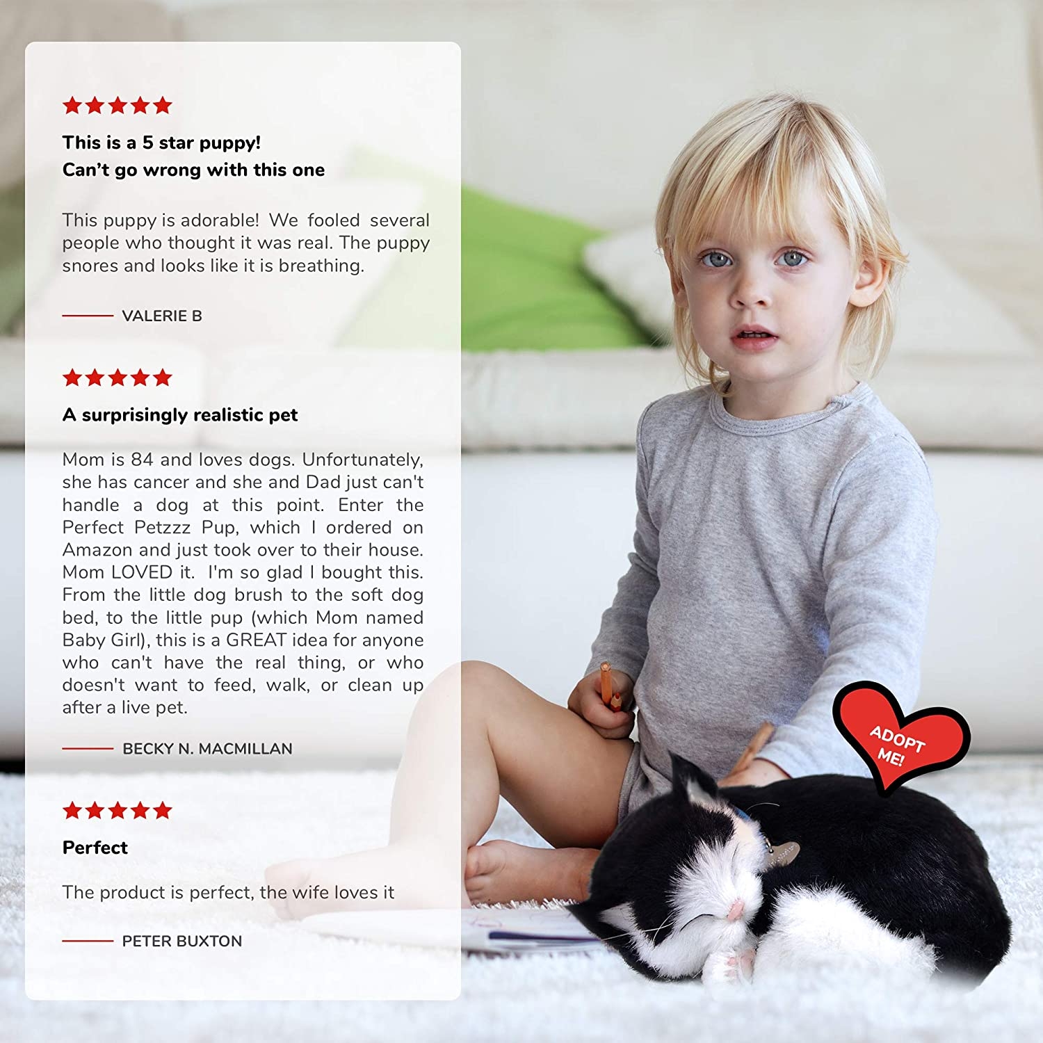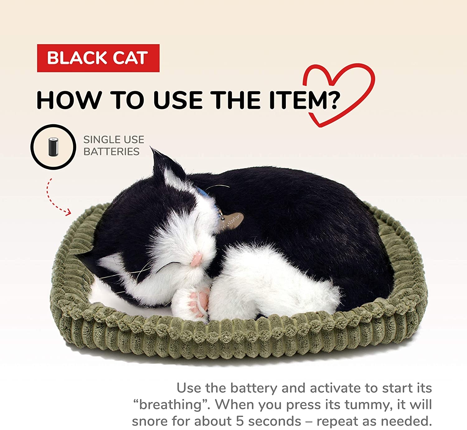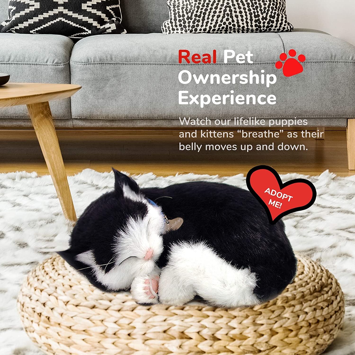 Perfect Petzzz Black and White Shorthair Cat. OFFERS REAL PET-OWNERSHIP EXPERIENCE – Experience the pleasures of owning a pet. Hug and play with it without the risk of getting bitten or scratched. Watch our Black and White Shorthair Cat “breathe” as its belly heaves up and down. HASSLE-FREE ALTERNATIVE TO ACTUAL PETS – Enjoy soft cuddles with our life-like pets without worries. No more messy feedings, harmful fleas, litter cleanups, and pricey trips to the vet. RELAXING COMPANION PLUSH PETS FOR ANY AGE – They’re wonderful companions for older people and children, providing a real-life relaxing pet-owning experience. Each Black and White Shorthair Cat has realistic features that include a soft body and movable tail. 100% SYNTHETIC FUR !
