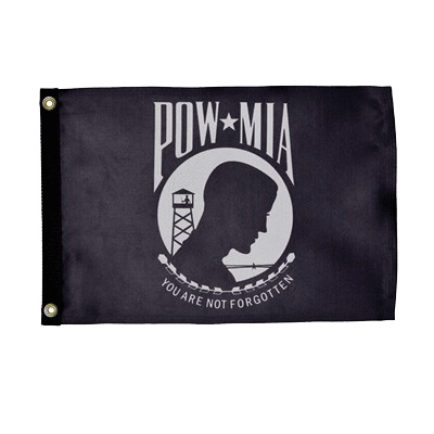 POW-MIA 12″ x 18″ Grommeted Flag. POW-MIA 12×18 Grommeted Flags are made from a weather and fade resistant polyester that is soft and silky to the touch. Lustre is a specialty lined fabric which allows designs to be right reading from both sides. The bright, bold colors and high quality material make these grommet flags an excellent way to honor our military!