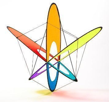 The EO Atom Box kite, made by Prism Designs, is the newest and smallest member of the brilliant EO (Expandable Object) series of single-line box kites. Like the others, the EO Atom kite folds flat and pops open ready to fly, no assembly required. The three intersecting planes of the EO Atom kite give it great stability but let you experiment with a wide range of tumbling tricks by slacking the line. The EO Atom kite has a nice feature for the occasional unplanned landing: No matter which way it lands, you can relaunch it instantly from any position just by tugging on the string.