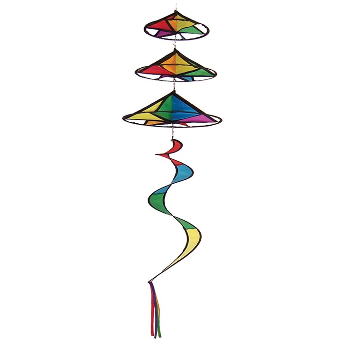 Rainbow Triple Magic Stars with twister tails are mesmerizing as they spin in the breeze. The bright colors and black accent edge give a blur of blissful color.