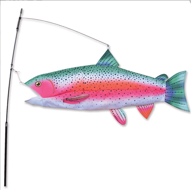Who would have thought a fish out of water could be having so much fun! Premier’s new Swimming Fish designed by Christophe Goy of Switzerland are a cross between a weathervane, a windsock, and a pet. These wet wonders fill up with air, bob, weave, and wag their tails just like real fish! Made with fade-resistant SolarMax fabric and tough fiberglass hardware, our Swimming Fish will make passers-by take notice.