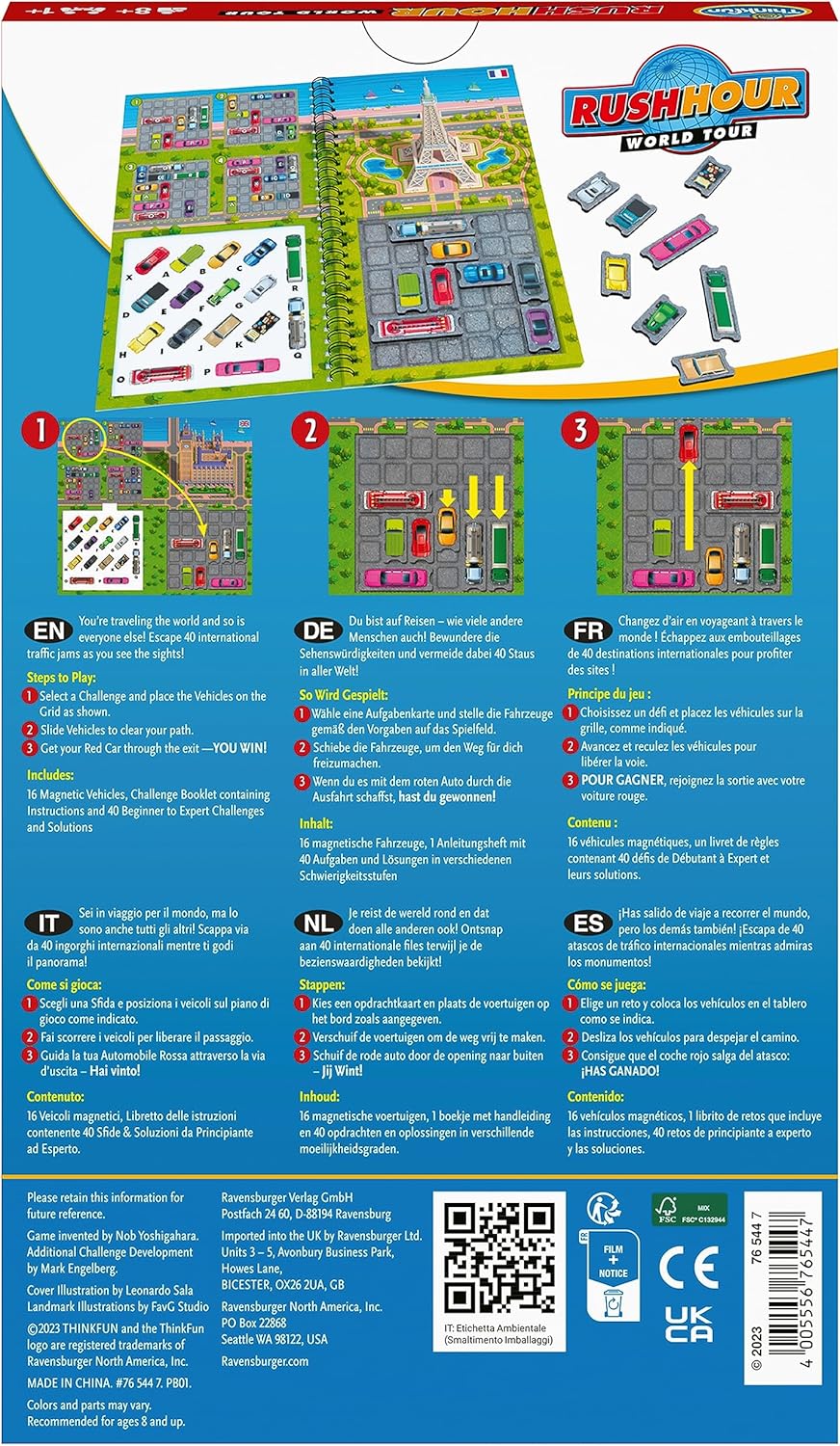 - Boredom Be Gone! – Rush Hour World Tour is here to rescue you from dull moments. With its compact design and magnetic pieces, you can take this brain-bending game anywhere. Challenge yourself or compete with friends while traveling or waiting. Get yours today and turn downtime into fun time!