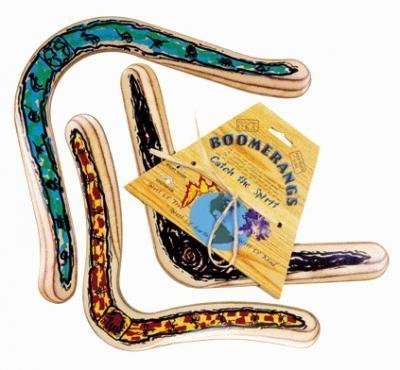These Spirit boomerangs are handcrafted from birch wood in traditional and contemporary designs. Each model has been tested and tuned for flight performance. Complete with illustrations, instructions, and U.S.B.A membership applications. Average Wind distance is 25+ yards.