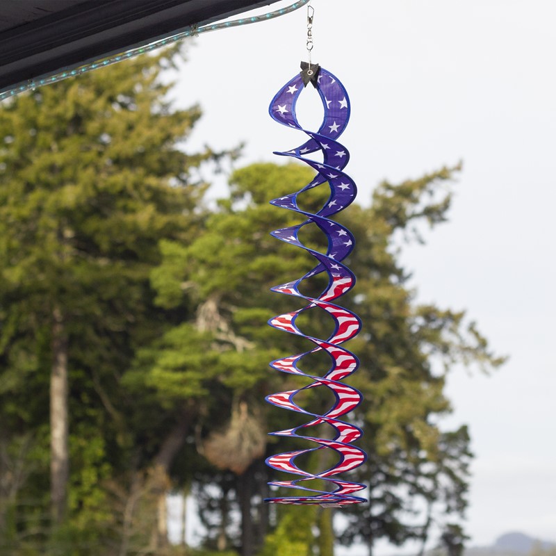 The Stars and Stripes Curlie Duets have a double helix body design that is engineered to spin with the slightest breeze! Watch the colors as they appear to move up and down.