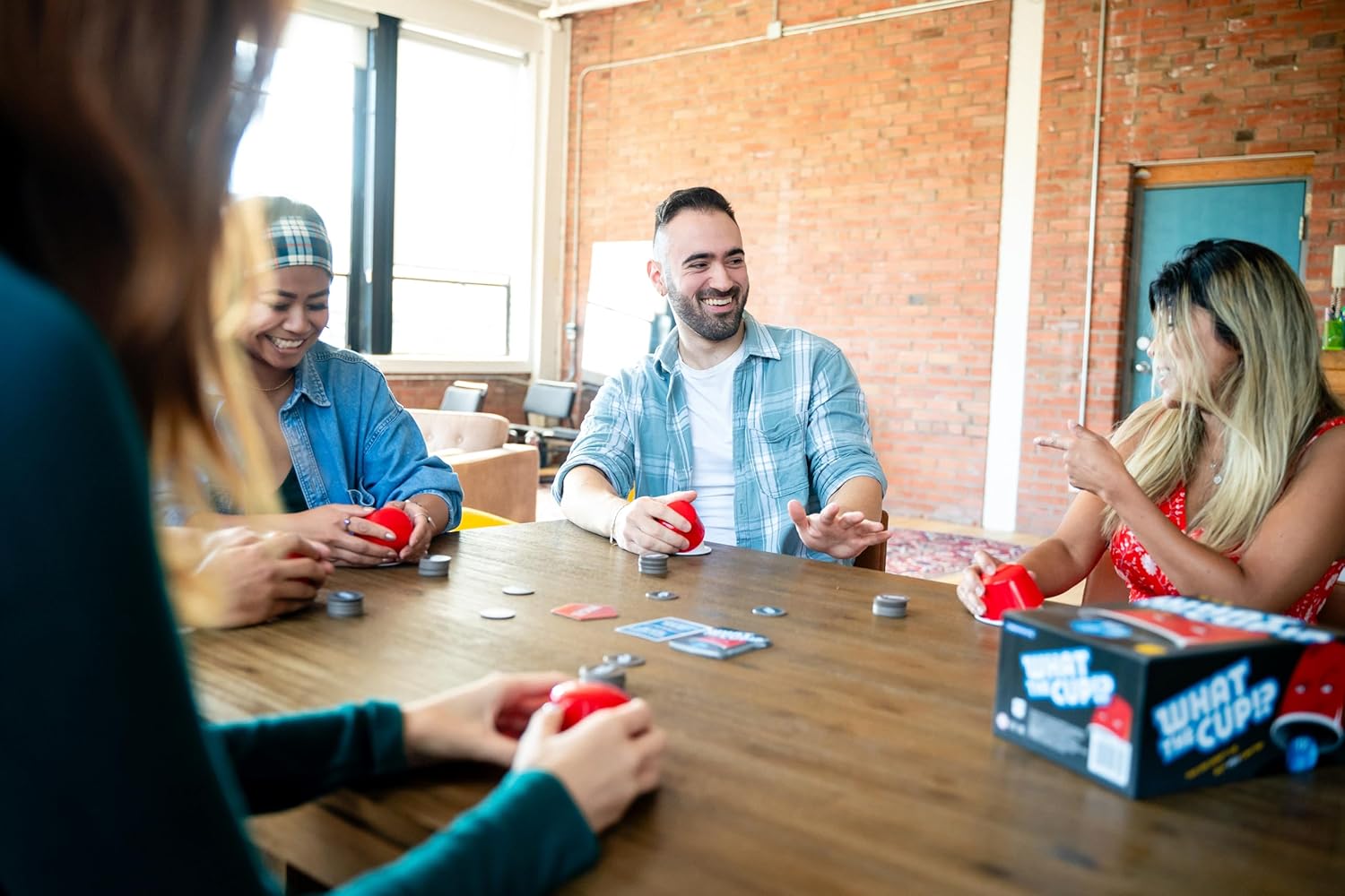 - What The Cup!? is a great gift for and is portable – it takes only a few minutes to learn and is a convenient, take anywhere you go sized game.