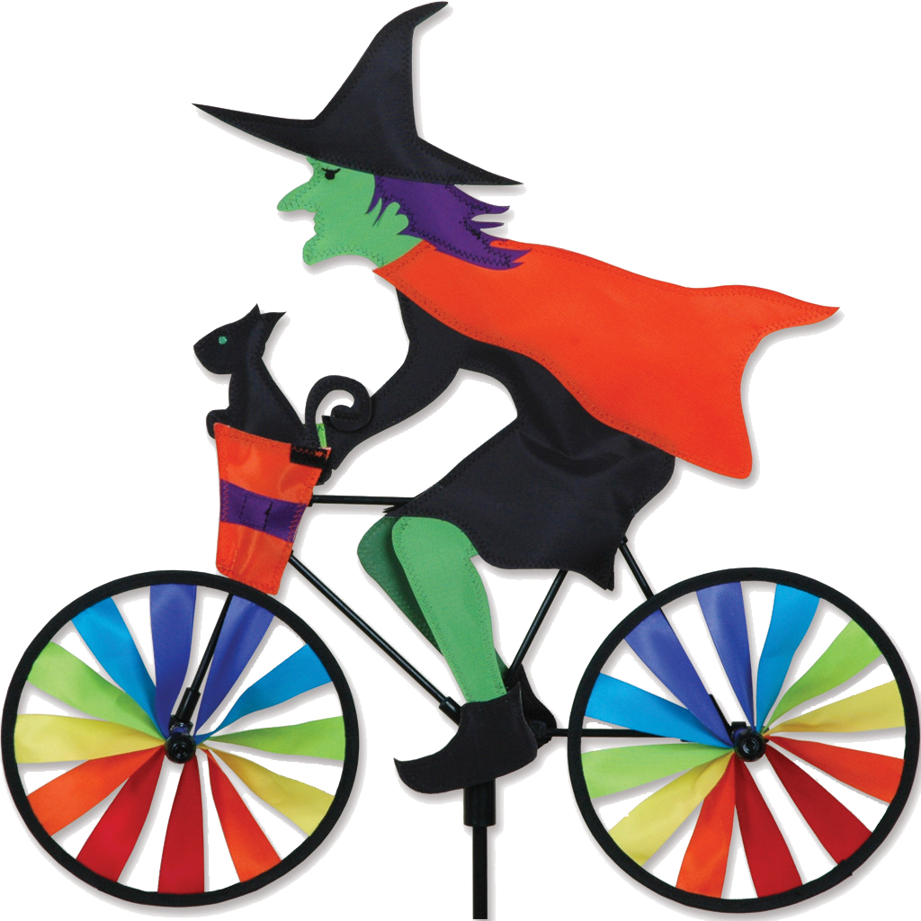 Witch on a Bicycle/Bike Spinner – 20″ by Premier Kites One of Premier’s best-selling spinner themes. Use this eye catching Witch on a Bicycle/Bike Spinner to decorate for Halloween and Fall!Spinner Bicycle/Bike – Witch Home Accessory