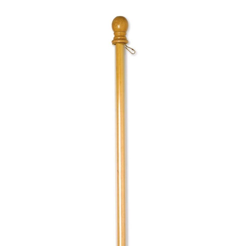 A flag department essential! An oak-stained Indonesian wood house flagpole with standard ball finial. Anti-wrap tube is used to keep flag from tangling in the wind along with flag clip.